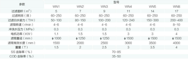 注:當廢水濃度越高、網(wǎng)目越高,SS、COD 去除率越高??筛鶕?jù)用戶需求,定做處理量大的機型和不銹鋼材質(zhì)配件。