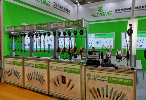 速動智能擰緊作為國內電動螺絲刀的專業品牌,此次展出的產品包括無碳刷電動螺絲刀、扭矩測試儀及周邊配套設備,其中電動螺絲刀又分為手動型系列和自動型系列,更有適用于工業產線的智能化電動螺絲刀系列產品,與產線連接聯動,將復雜的擰緊過程數字化,讓使用者對擰緊作業有更直接的控制及監控,助力合作伙伴邁入工業4.0 智能制造新時代,深刻體現“擰緊事小,價值事大”的速動品牌主張。