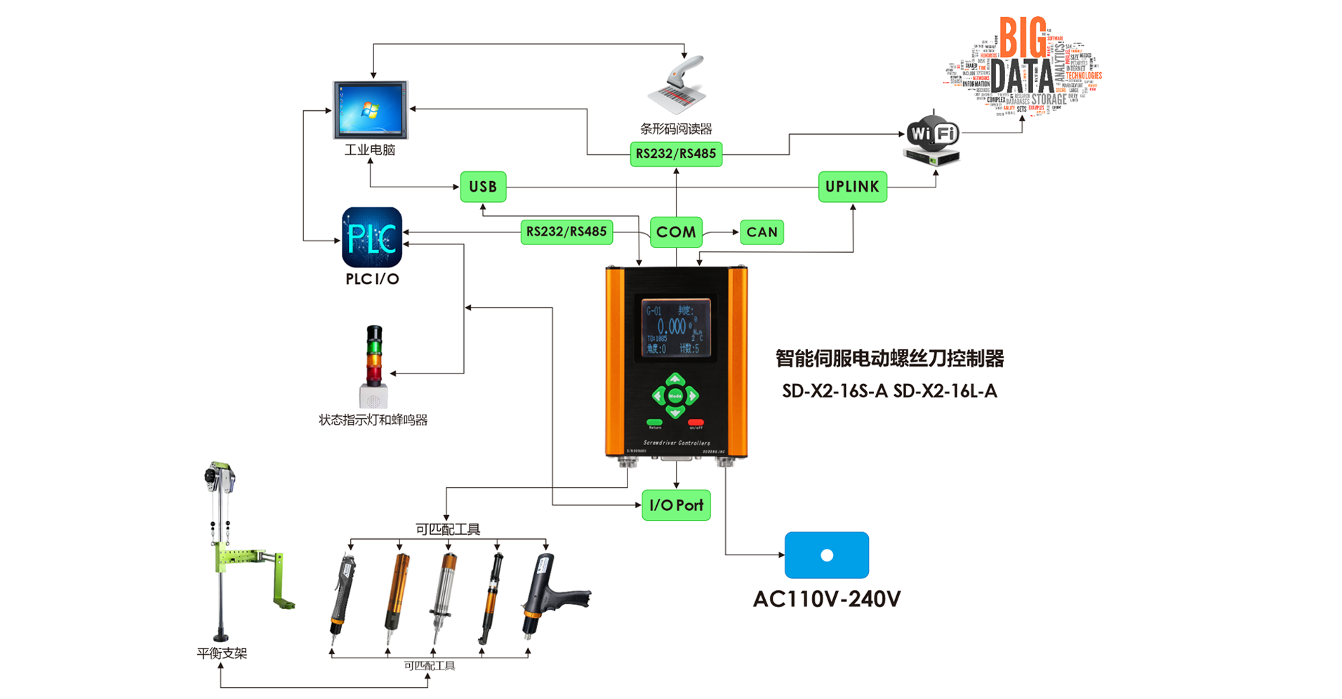 1、SD-X2系列控制器完全控制整個擰緊過程,大幅度改善產品質量和優化擰緊流程,可自動識別浮鎖、滑牙、扭矩不良、角度不良等擰緊故障。