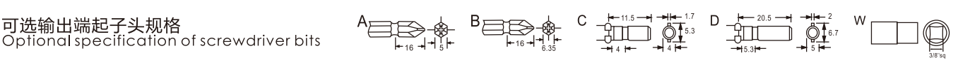 | 型號 | 扭力范圍 | 空載轉速 | 輸入電壓 | 重量 | 標準批頭 | |