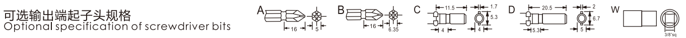 型號扭力范圍空載轉速輸入電壓重量標準批頭